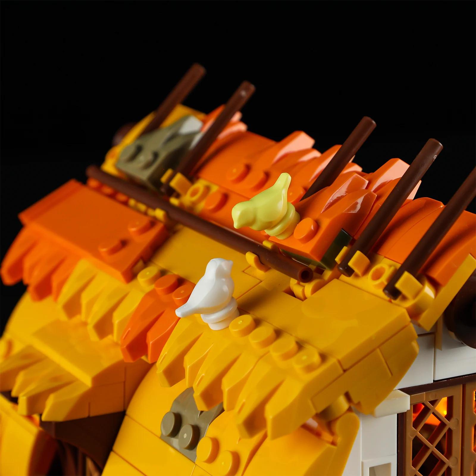 In diesem Set gibt es 7 beleuchtete Positionen. 1 Licht befindet sich vor der Tür und 1 Licht außerhalb der Tür, so dass der Wasserradantrieb der Mühle mit dem Licht kombiniert wird. Der dynamische Effekt des sich drehenden Wasserrads wird durch die intermittierende Beleuchtung spürbar. Darüber hinaus sind 2 eisblaue Lichtpunkte auf dem Wasser neben der Mühle angebracht, die eine ruhige Atmosphäre der mittelalterlichen Landschaft bei Nacht schaffen.