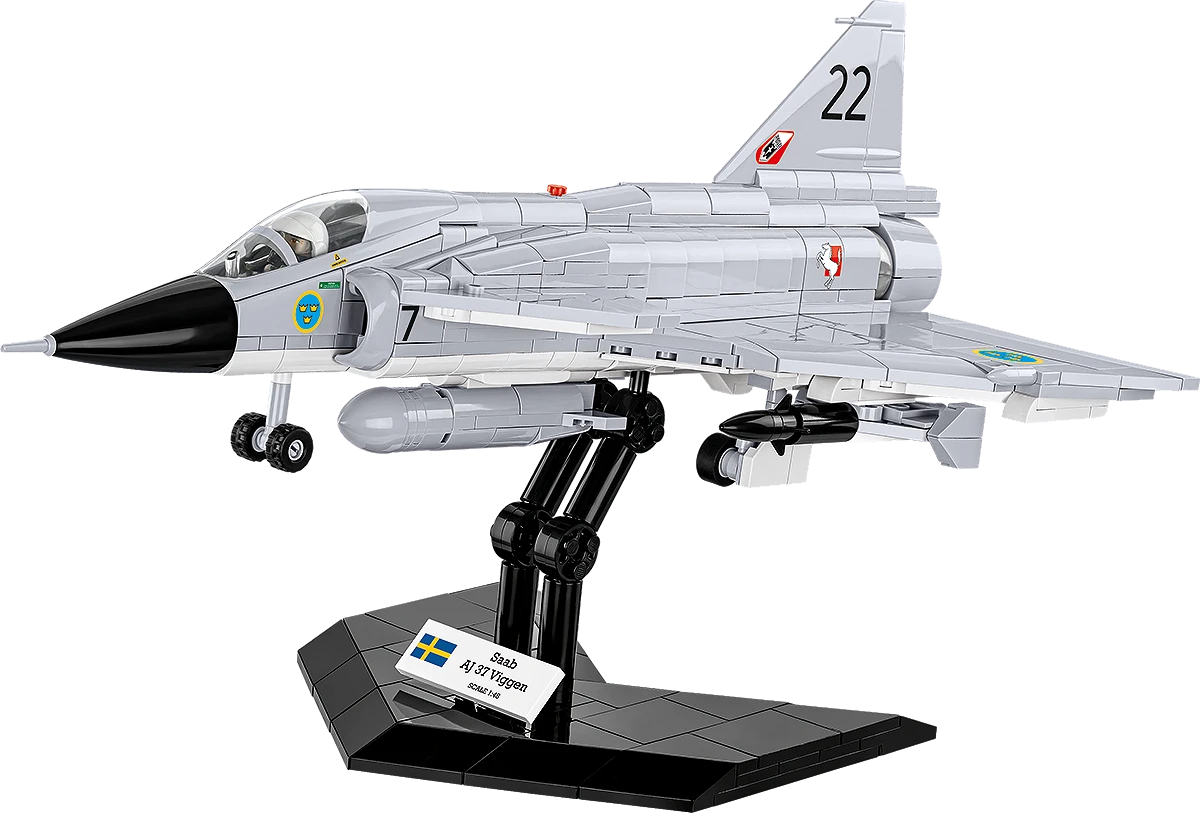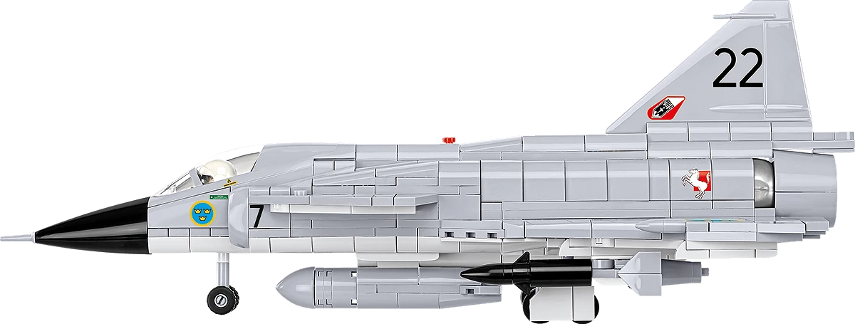 Die Saab JA 37 Viggen war ein Kampfflugzeug, das zu seiner Zeit eine technologische Revolution darstellte! Jetzt kannst du es aus Steinen bauen und deiner Sammlung hinzufügen. Dieses einzigartige Modell voller Charakter, Geschichte und Ingenieurskunst wird ein wahres Schmuckstück in deiner Vitrine sein!